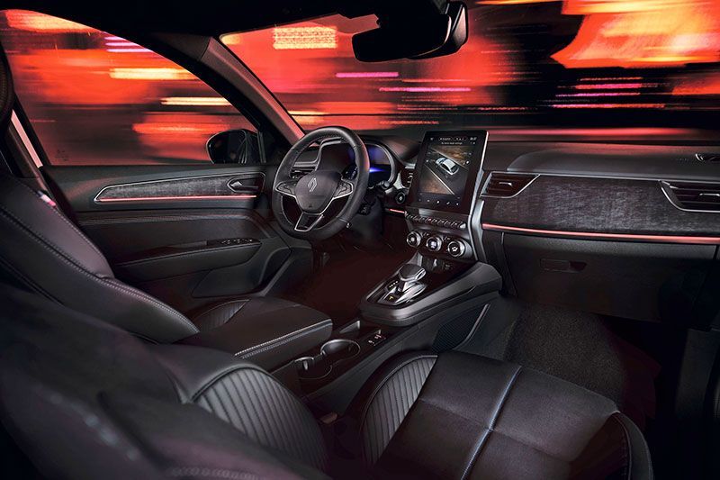 Renault Arkana E-Tech hybrid combina materiales premium con costuras en volantes, tapizados y paneles interiores en color azul, blanco y rojo. Además cuenta con techo solar con apertura eléctrica y asientos delanteros con calefacción. Dentro de este vehículo vivirás una experiencia de sonido envolvente con 9 altavoces de alto rendimiento Bose®. En su interior, también encontrarás una pantalla central de 9.3” y panel de instrumentos digital personalizable de 10.2”.