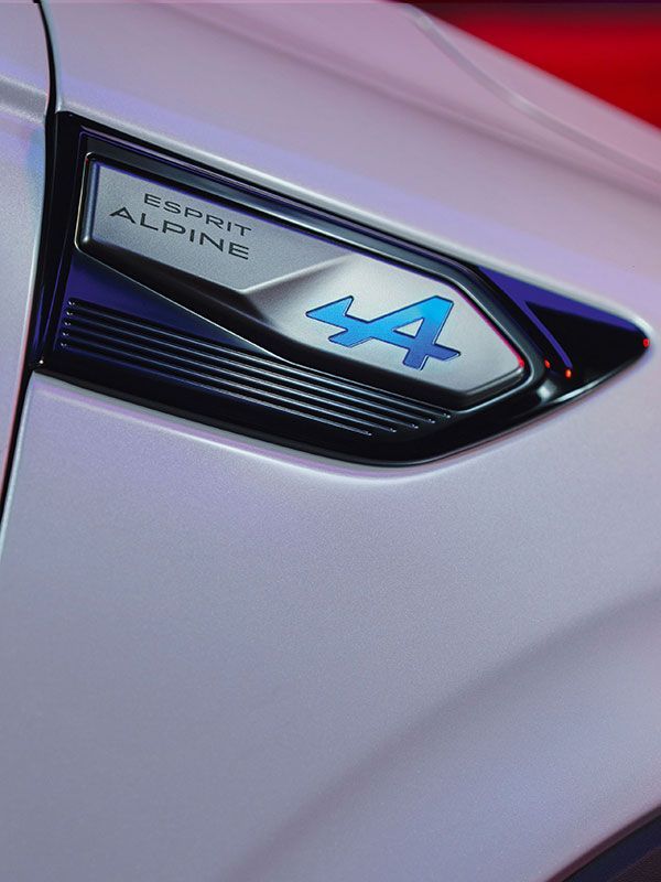 Diseño exterior e interior inspirado en el espritú Alpine. Parrilla delantera cromada con patrón de diamantes y nuevo emblema, luces full LED, llantas 18'', insignia esprit Alpine, tapizados exclusivos y detalles en azul, blanco y rojo en el interior.