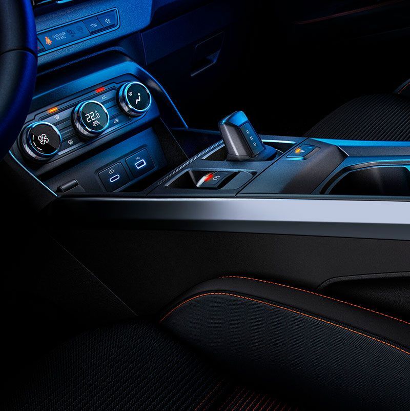Alta tecnología con un diseño exclusivo: la nueva consola elevada es ergonómica y amigable para el conductor, lo que permite utilizar el selector de marchas "e-shifter“ y el freno de estacionamiento eléctrico de manera intuitiva.